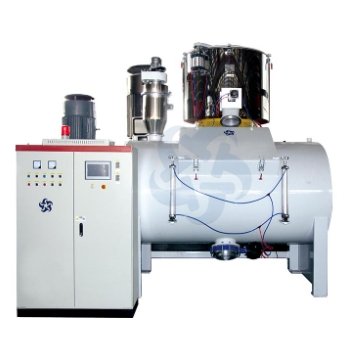 用于塑料、橡胶、日用化工等行业各种物料的混合、搅拌、干燥、着色等工艺,是生产塑料板材、地板、棺材、异型材及降解塑料的理想设备。该机组是引进消化并吸收国外先进技术研制而成,混合物料采用负压混合原理。电器仪表全部采用进口电器,并可采用PLC程序电脑控制。具有自动化程度高,混合速度快等特点。起桨叶为精密不锈钢压力铸造,且通过动静平测试。特别是冷却机桨叶采用国外先进滴滴螺杆旋搅拌结构,整个容器没有死角,冷却速度快,出料干净,等特点。